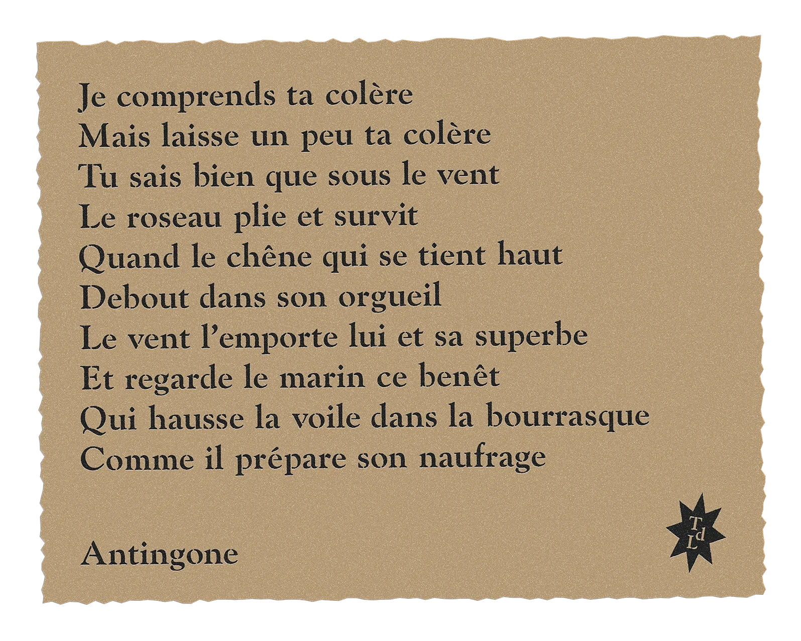 Dans Antigone, Sophocle raconte le destin tragique d’une jeune femme qui défie la loi des hommes pour respecter celle des dieux. Orpheline et courageuse, Antigone choisit d’ensevelir son frère Polynice, malgré l’interdiction de Créon, roi de Thèbes. Ce geste de loyauté filiale déclenche une spirale de conflits, où le pouvoir, l’obéissance et la conscience s’affrontent. Entre fureur des hommes et rigueur divine, la pièce explore la tragédie des choix impossibles, où l’honneur et la justice s’entrelacent dans le sang et la douleur.