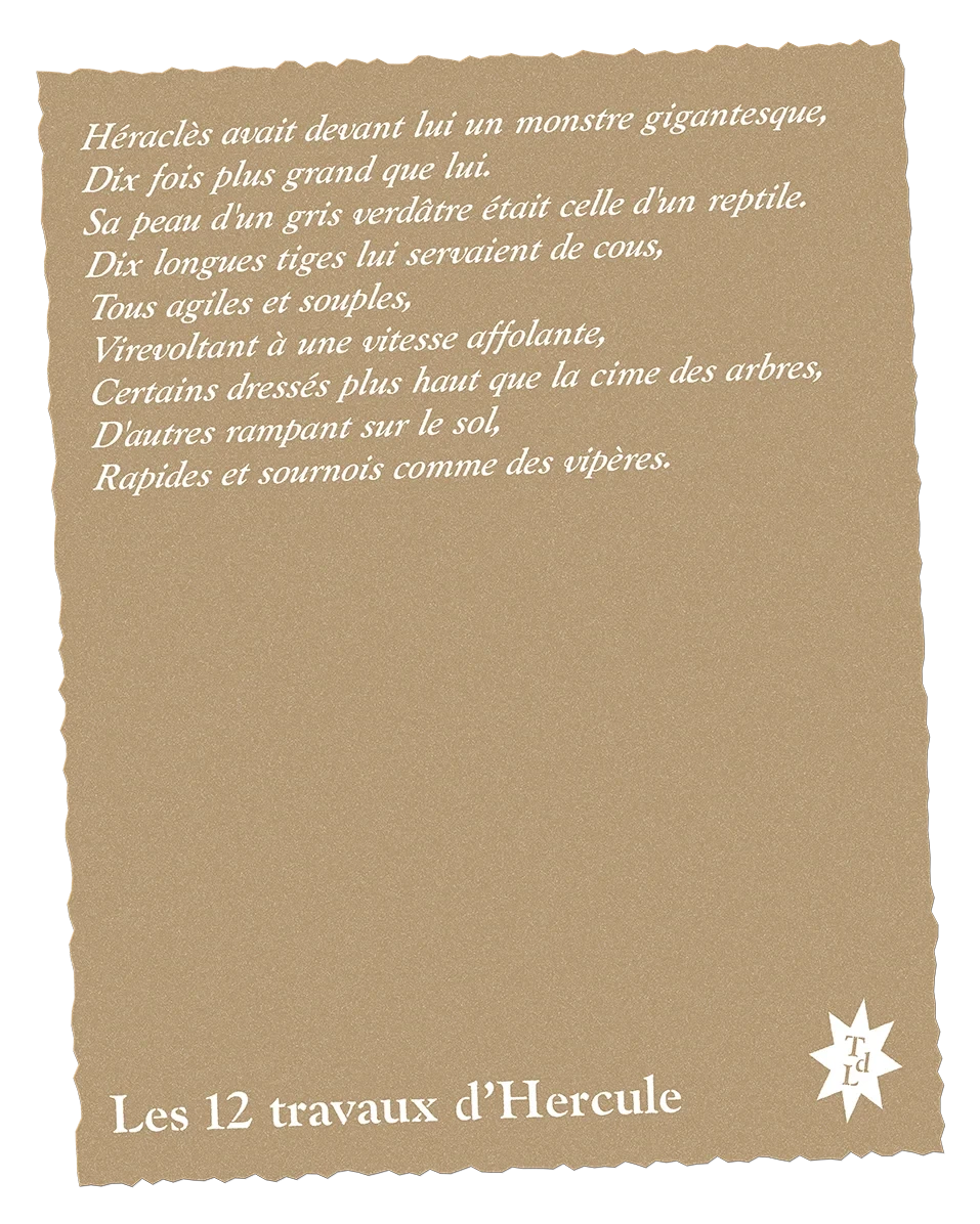 Faire entendre cette histoire et la représenter par des enfants devant leurs parents est une expérience fabuleuse. Nous ne nous souvenons pas toujours des détails des travaux d’Héraclès ; ainsi, revoir ces épisodes avec clarté, vitalité et humour, interprétés par nos enfants de onze ans, est particulièrement touchant.