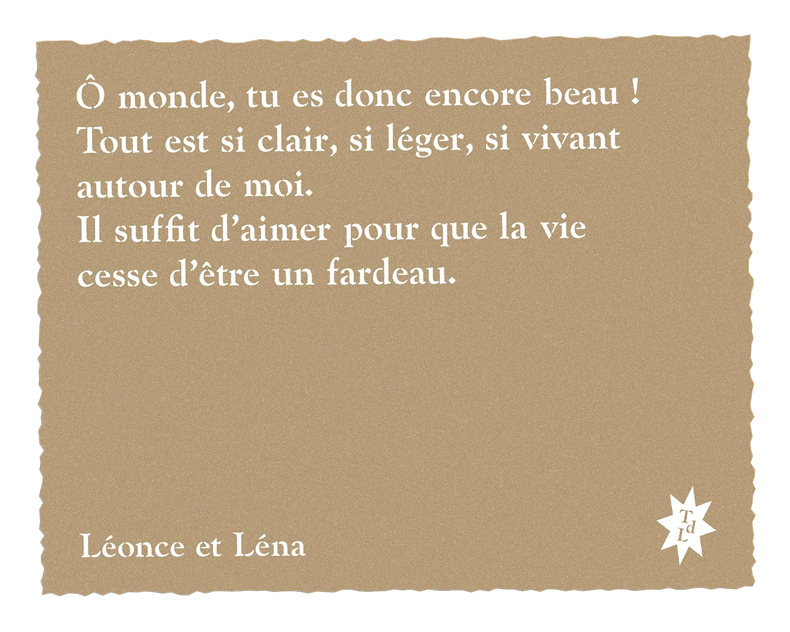 Léonce et Léna de Büchner est une comédie satirique où deux jeunes aristocrates fuient un mariage arrangé sans se connaître. Ils se rencontrent par hasard, tombent amoureux et se marient, ignorant qu’ils étaient les fiancés prévus. La pièce critique le pouvoir, les conventions et l’absurdité sociale.